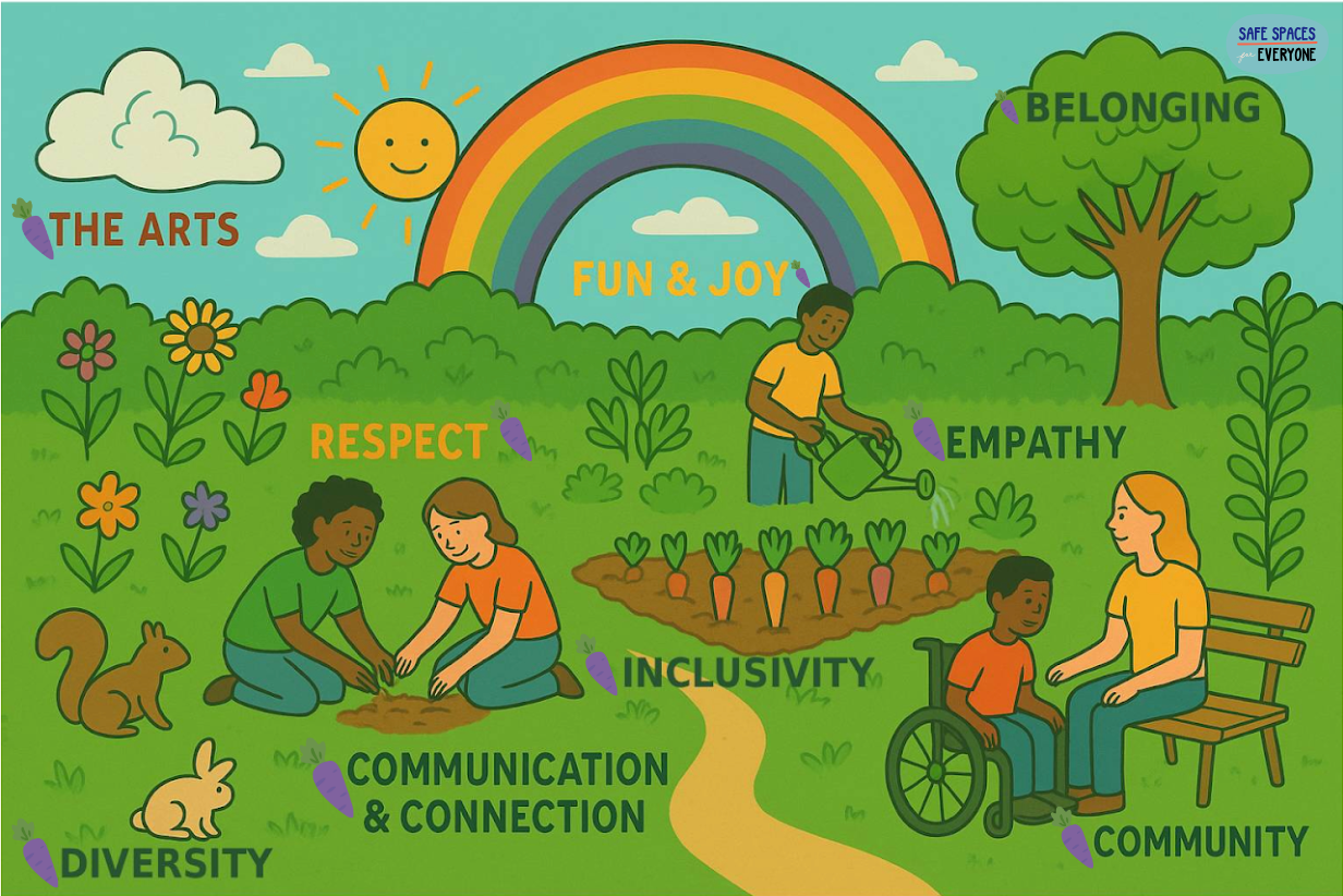 | Communication & Connection: | We recognize that at the heart of communication is connection. We practice open, honest, and transparent communication to build trust and lasting relationships, while recognizing and embracing all ways of communicating; to ensure every individual can learn, understand, express themselves fully and feel understood and connected to the world around them. | ||
